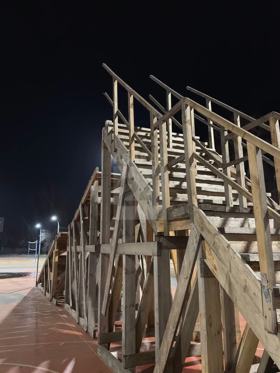 Сейчас на объект завозится пиломатериал и выполняются черновые работы. По завершению сборки каркаса будущих аттракционов, как установится стабильный минус, специалисты начнут завозить и резать лед