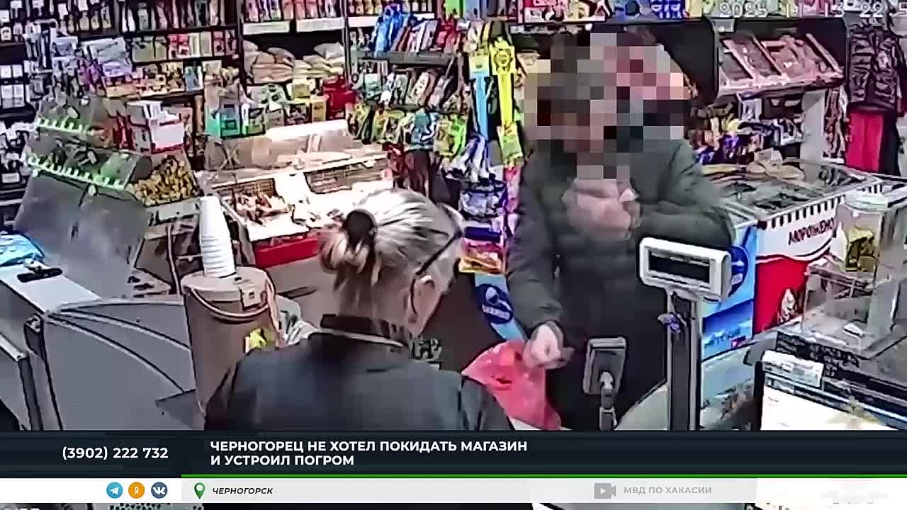 В одном из магазинов Черногорска посетитель устроил скандал с погромом. Угомонил буйного парня проезжающий мимо патруль ДПС. Полиция опубликовала кадры инцидента.