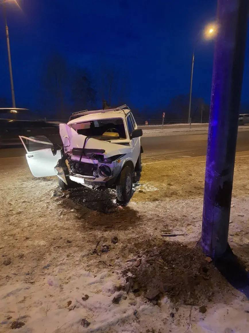 На трассе "Енисей" 67-летний водитель "ВАЗ 21213" не справился с управлением и влетел в опору освещения.