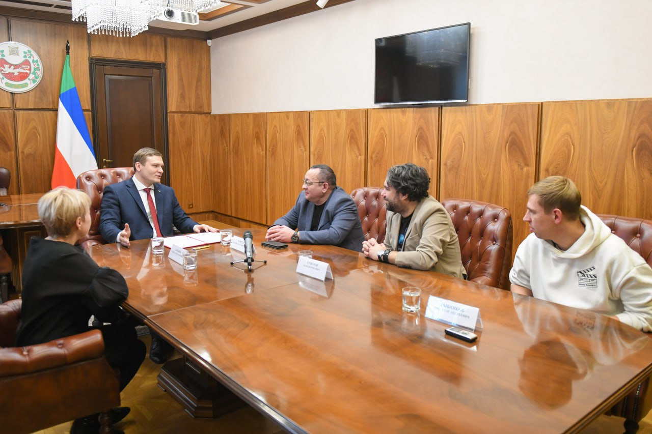 Глава Хакасии Валентин Коновалов встретился с авторами нового проекта: режиссером из Петербурга Ильей Северовым и креативным продюсером будущей ленты Николаем Рыбниковым из Москвы, известным как режиссер фильма «Чекаго».