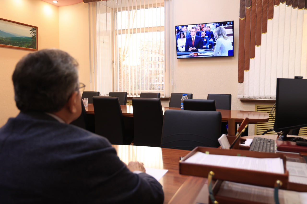 Президент ответил на массу вопросов и сделал важные заявления в области СВО, экономики, налогообложения, социальной политики. Депутаты Верховного Совета внимательно следят за ходом совмещенной пресс-конференции, размещая в своих социальных сетях самые важные высказывания. Всего на прямую линию поступило более 2,5 млн вопросов. Аккредитовано более 600 журналистов. В зале присутствуют корреспонденты из Хакасии.