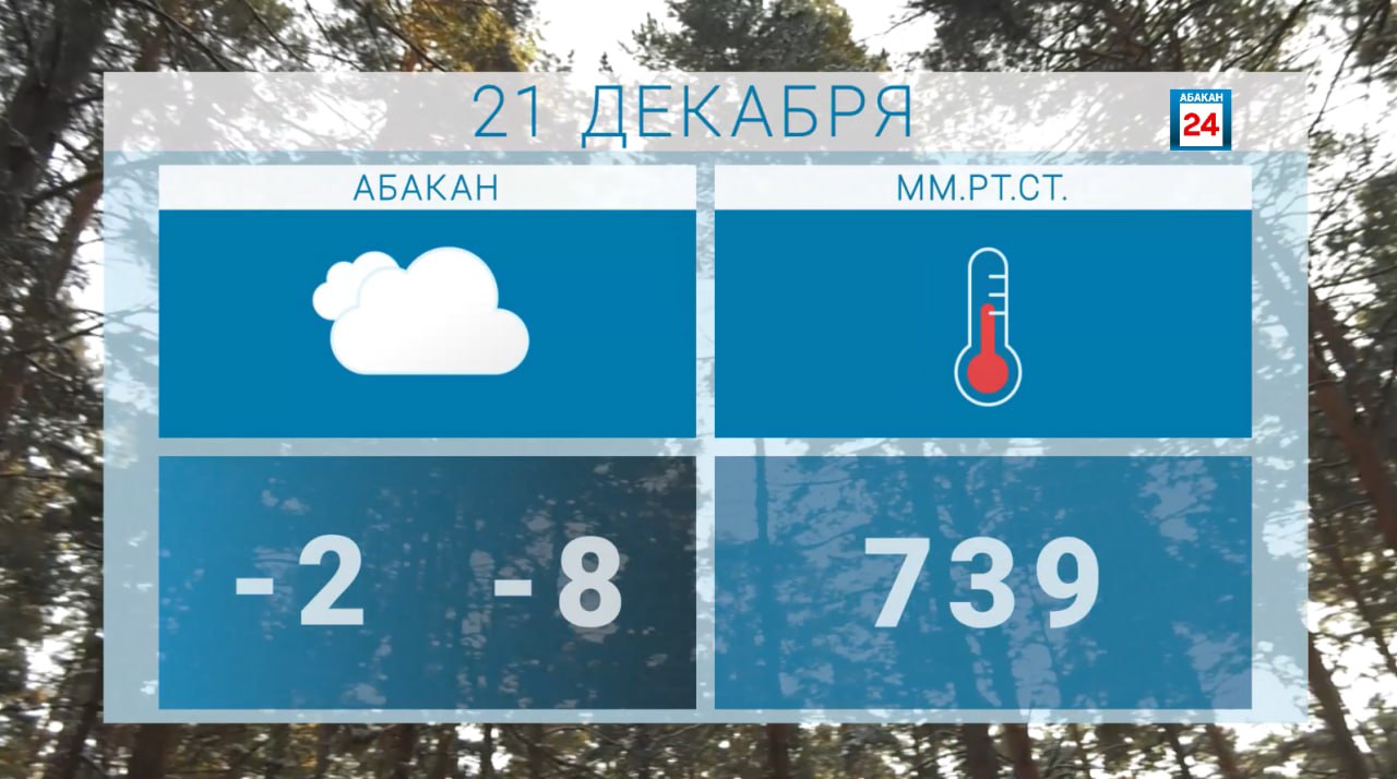 В ночь с 20 на 21 декабря по Республике переменная облачность, небольшой, местами умеренный снег, в горах – сильный.Ветер западной четверти 3-8 м/с, местами порывы 13-18 м/с.Температура воздуха -6,-11°, местами -12,-17°.На дорогах гололедица.В Абакане...