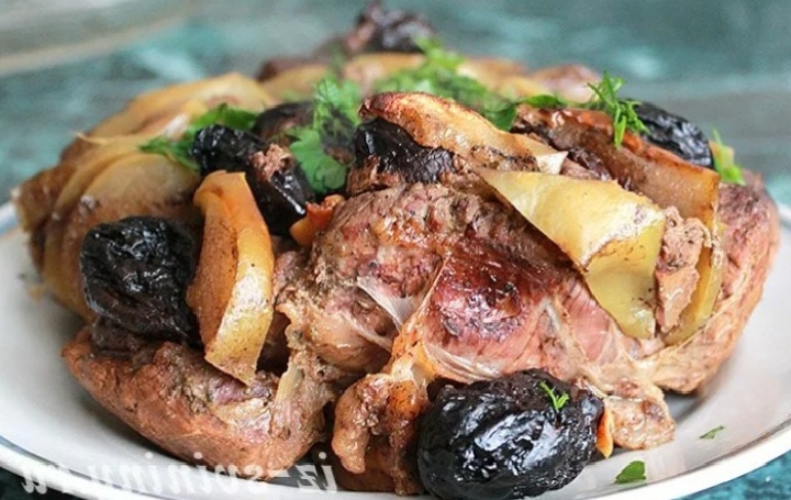 - Отличное сочетание: Нежная свинина прекрасно сочетается с фруктами. Яблоки придают кислинку, а чернослив — сладость, создавая идеальный баланс.