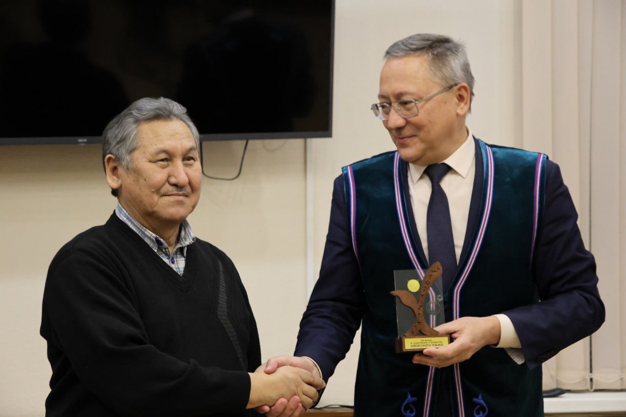 В финале встречи Народному писателю Хакасии вручили уникальный знак