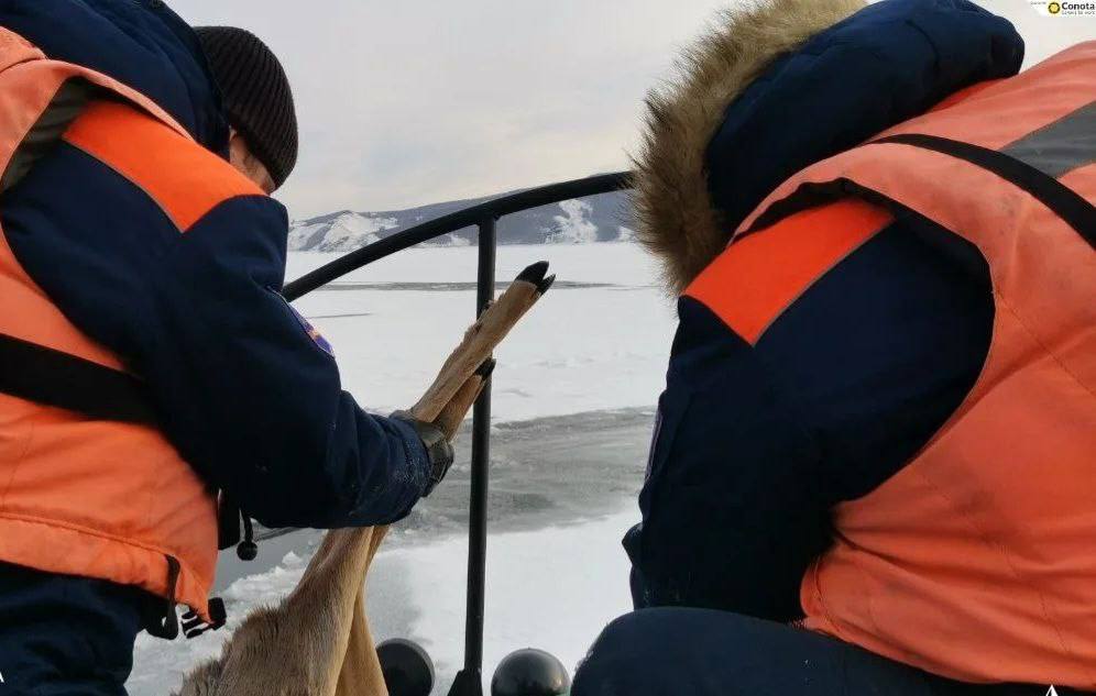 Работники лесной охраны в Балахтинско-Новосёловском муниципальном округе заметили животное на тонком льду.