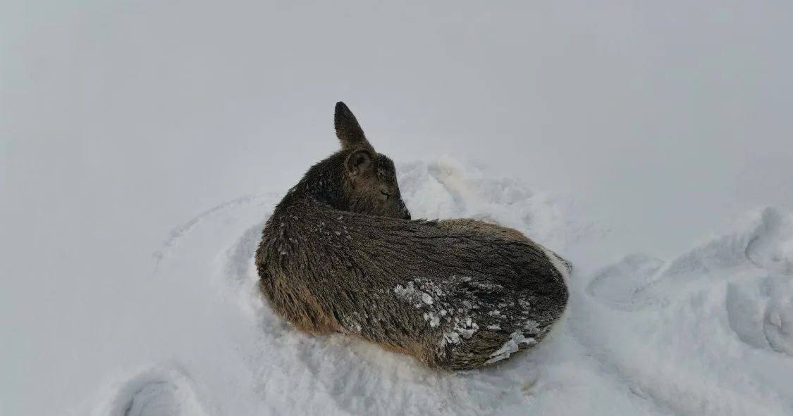 Быстро перебежать на другой берег по скользкой глади косуля не смогла и, обессилив, осталась лежать посреди водоема