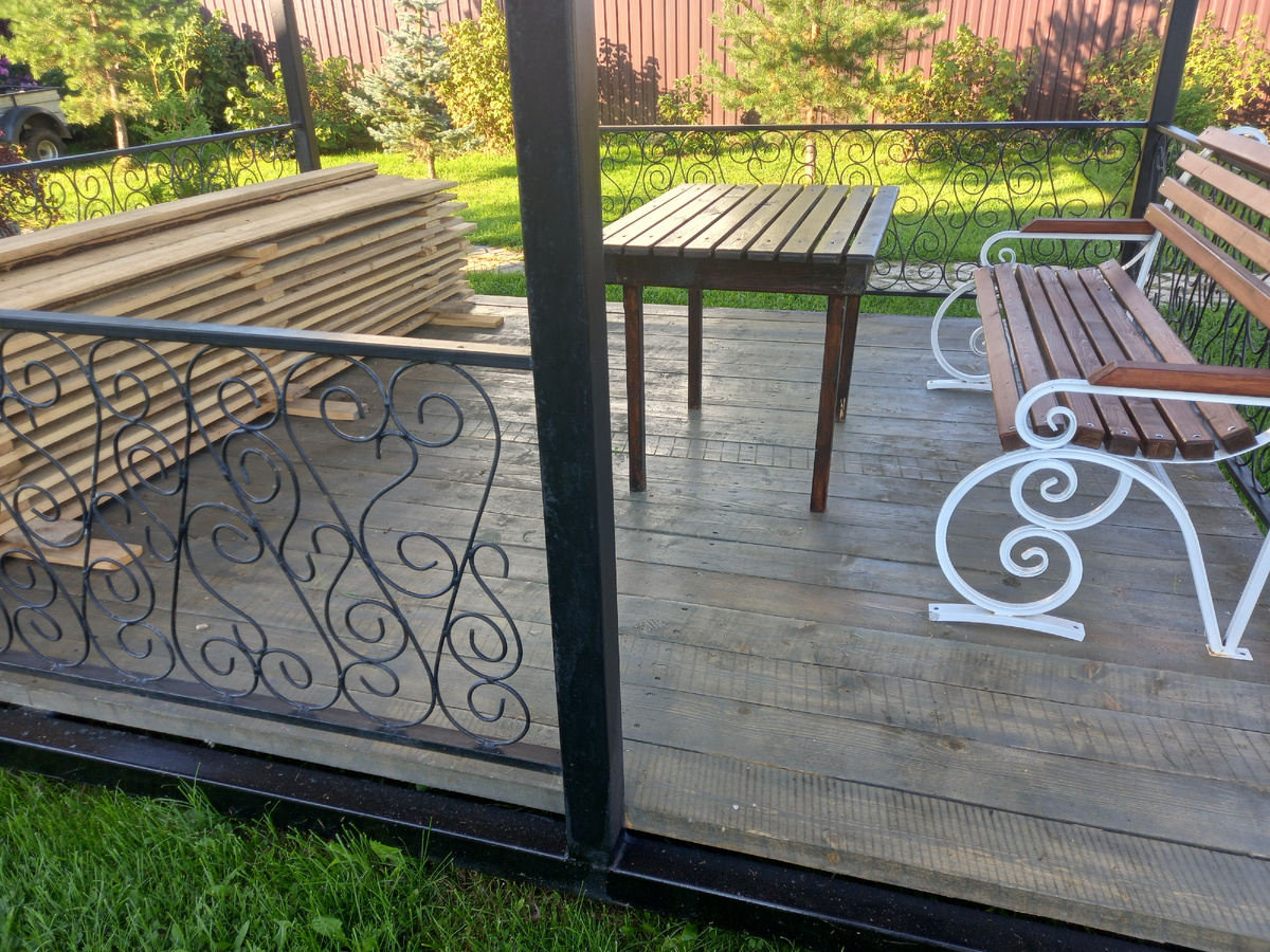 В процессе работы было потрачено около 100 тысяч рублей на различные материалы: профиль, доски и мягкую черепицу для крыши. Несмотря на большие затраты, общее количество финансирования на строительство осталось невысоким, так как было использовано много самодельных элементов. Сначала использовался временный столик из бани, но он не соответствовал идее нового уютного пространства.