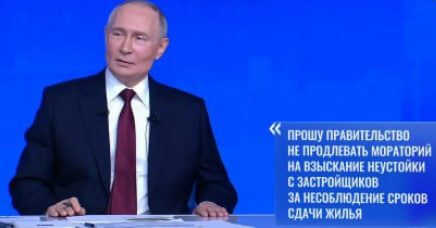 19 декабря Владимир Путин на прямой линии с гражданами озвучил ясную позицию: он просит правительство не продлевать мораторий. "Данный мораторий действует до конца года. Считаю, что его достаточно. Кроме того, ключи должны передаваться вовремя", — заявил Президент. Он подчеркнул необходимость четкого выполнения обязательств застройщиками.
