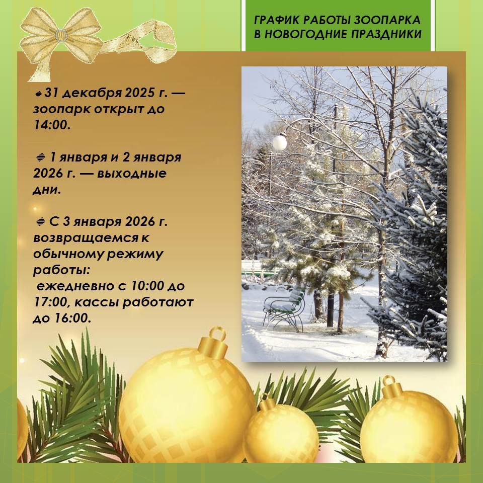 1 января и 2 января 2026 - выходные дни, зоопарк закрыт.
