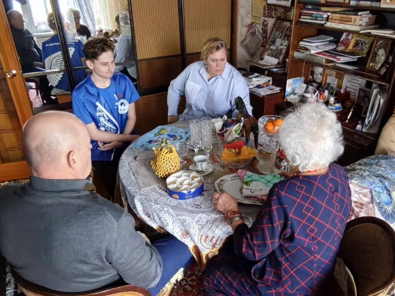 Ольга Городкова и Леонид Быков совместно с активистами движения "Волонтеры Победы" адресно посетили ветеранов ВОВ Владимира Ильича Попова и Ивана Егоровича Рахвалова, а также дочерей блокадного Ленинграда Марию Ивановну Ильину и Людмилу Григорьевну Мишкинис, чтобы вручить им праздничные подарки, передать искренние слова благодарности и поздравить с Новым годом.