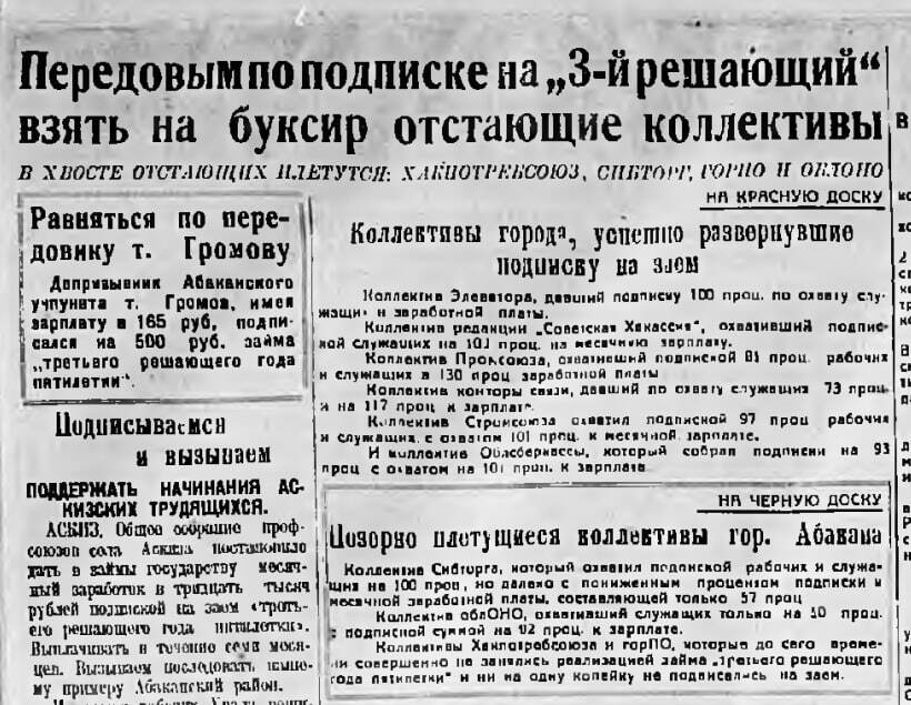 Из 57,3 млрд руб., ассигнованных на финансирование народного хозяйства СССР в годы первой пятилетки 1928-1932 гг., 5,2 млрд поступило от граждан по подписке. В 1937 г. налоги и сборы с населения составили 4 млрд 27,7 млн руб., а поступления по подписке на заем – 4 млрд 330 млн руб.