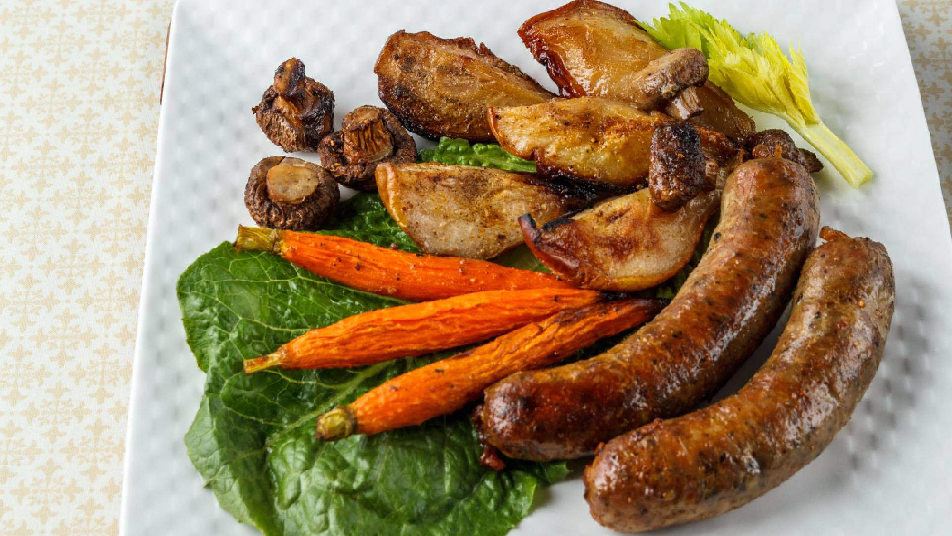 Посолите и слегка приправьте итальянскими травами. Сверху положите купаты. Запекайте в духовке при температуре 200 градусов примерно 30 минут. Можно добавлять в блюдо и другие любимые овощи. Например, болгарский перец, тыкву или кабачки, рекомендует «Лайфхакер».