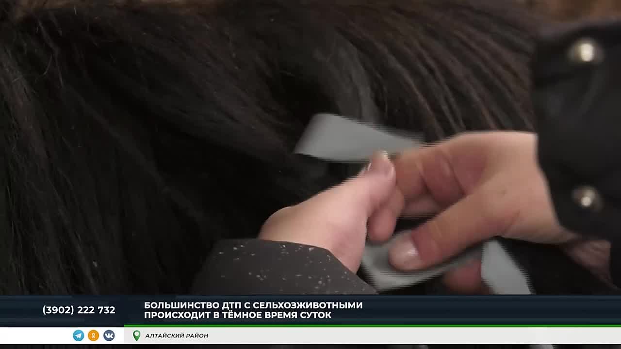 Количество ДТП с животными растет, а найти их владельцев - настоящая проблема. Госавтоинспекторы Хакасии предлагают фермерам решение — световозвращающие элементы для скота.