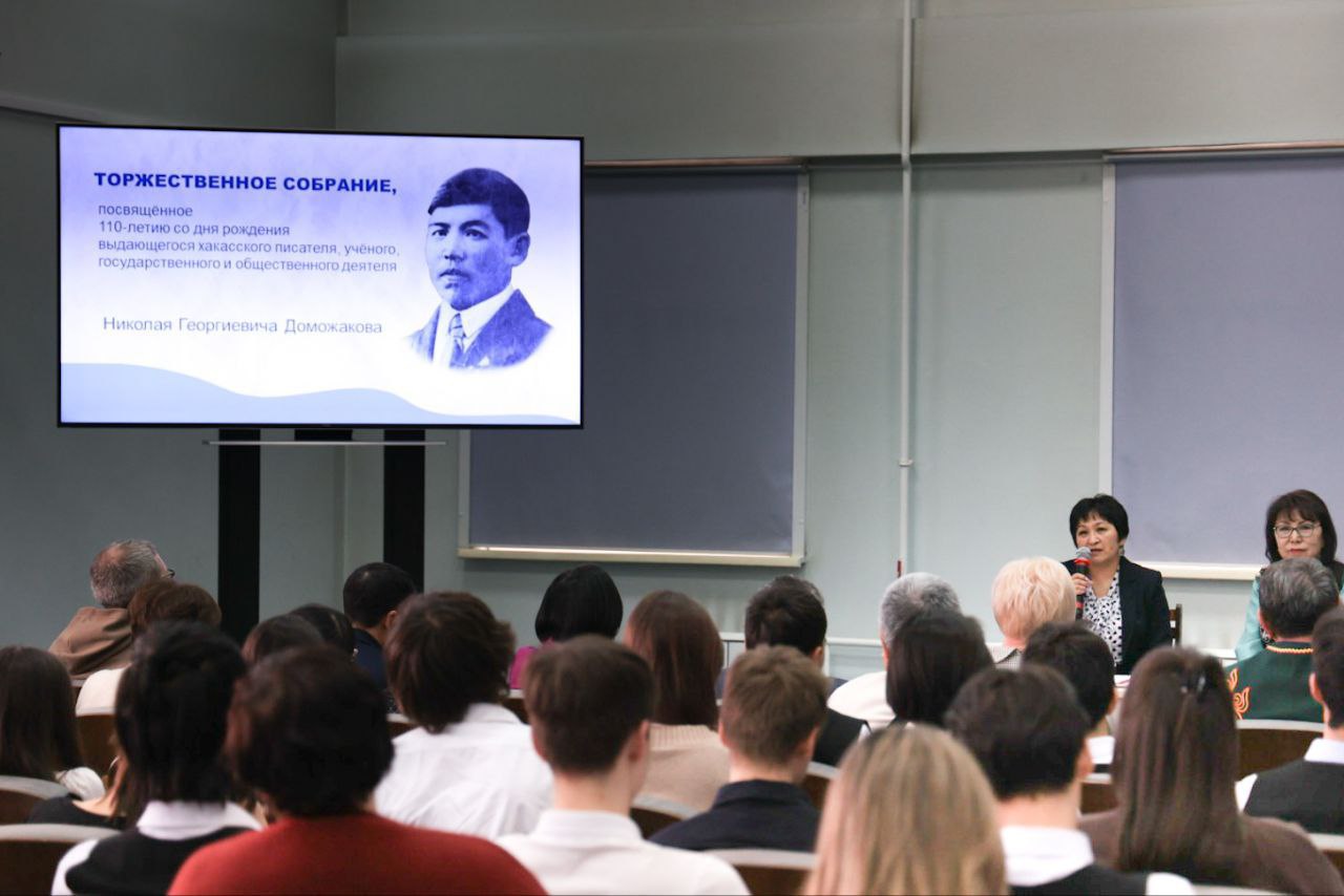 В республиканской библиотеке, носящей его имя, прошла встреча к 110-летию писателя, ученого и общественного деятеля. В зале собрались представители власти, старейшины хакасского народа, ученые, деятели культуры, общественники и студенты. Говорили о наследии Доможакова и его значении для республики сегодня.