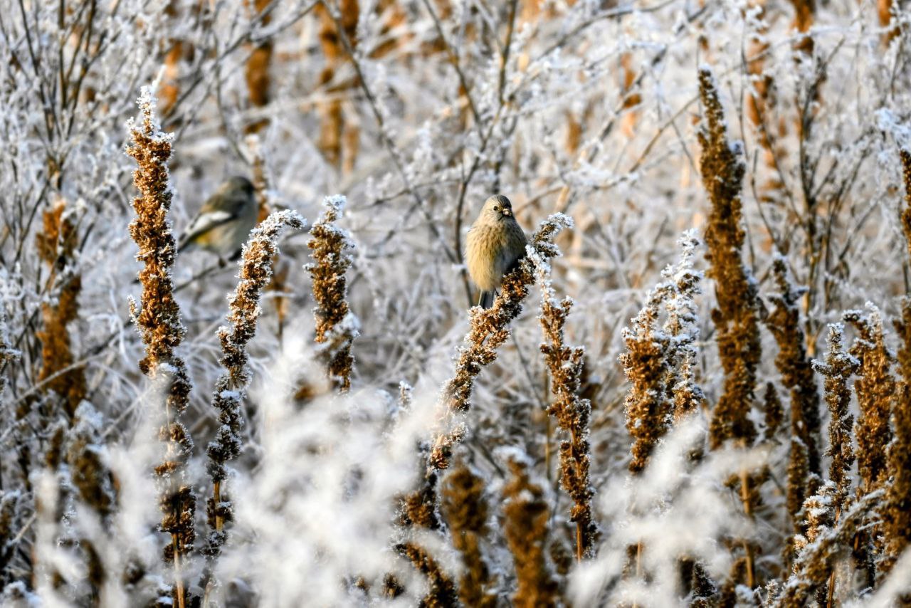 Урагусы или длиннохвостые чечевицы — настоящие сибиряки, они зимуют вместе с нами. Сбиваются в небольшие стайки и кочуют в поисках пропитания. Кстати, любимое лакомство пернатых— полынь.