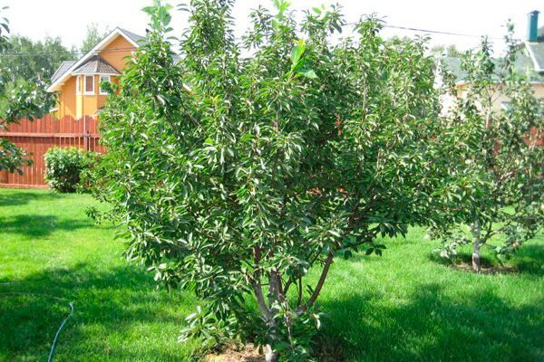 Вишня Ровесница – это компактное деревце высотой до 3 метров с кроной, напоминающей перевёрнутую пирамиду. Ствол и ветви отличаются тёмно-коричневой гладкой корой, а листья имеют выраженное заострение и характерную морщинистость.