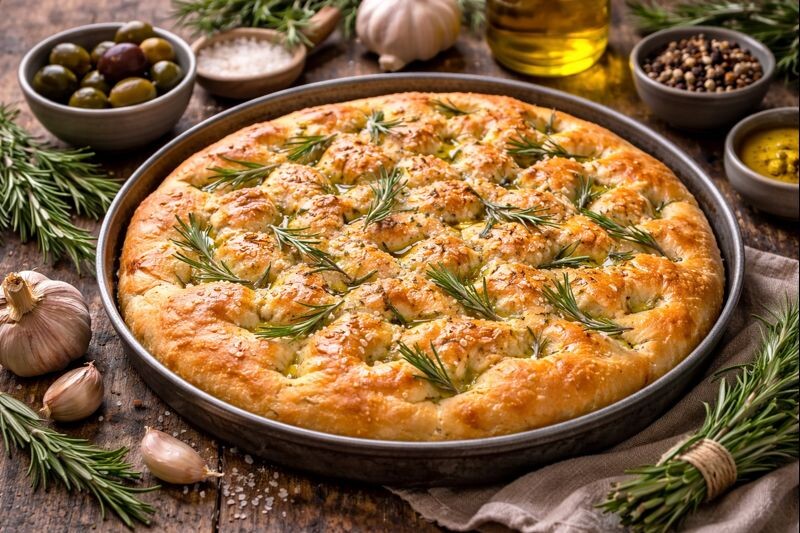 В Италии фокачча пекут не только по праздникам, но и по настроению. Это хлеб для тех моментов, когда хочется замедлиться и насладиться атмосферой вечера. Фокачча — это не просто хлеб, это настоящая кулинарная история, где щедро используется оливковое масло, свежие травы и тепло домашнего уюта.