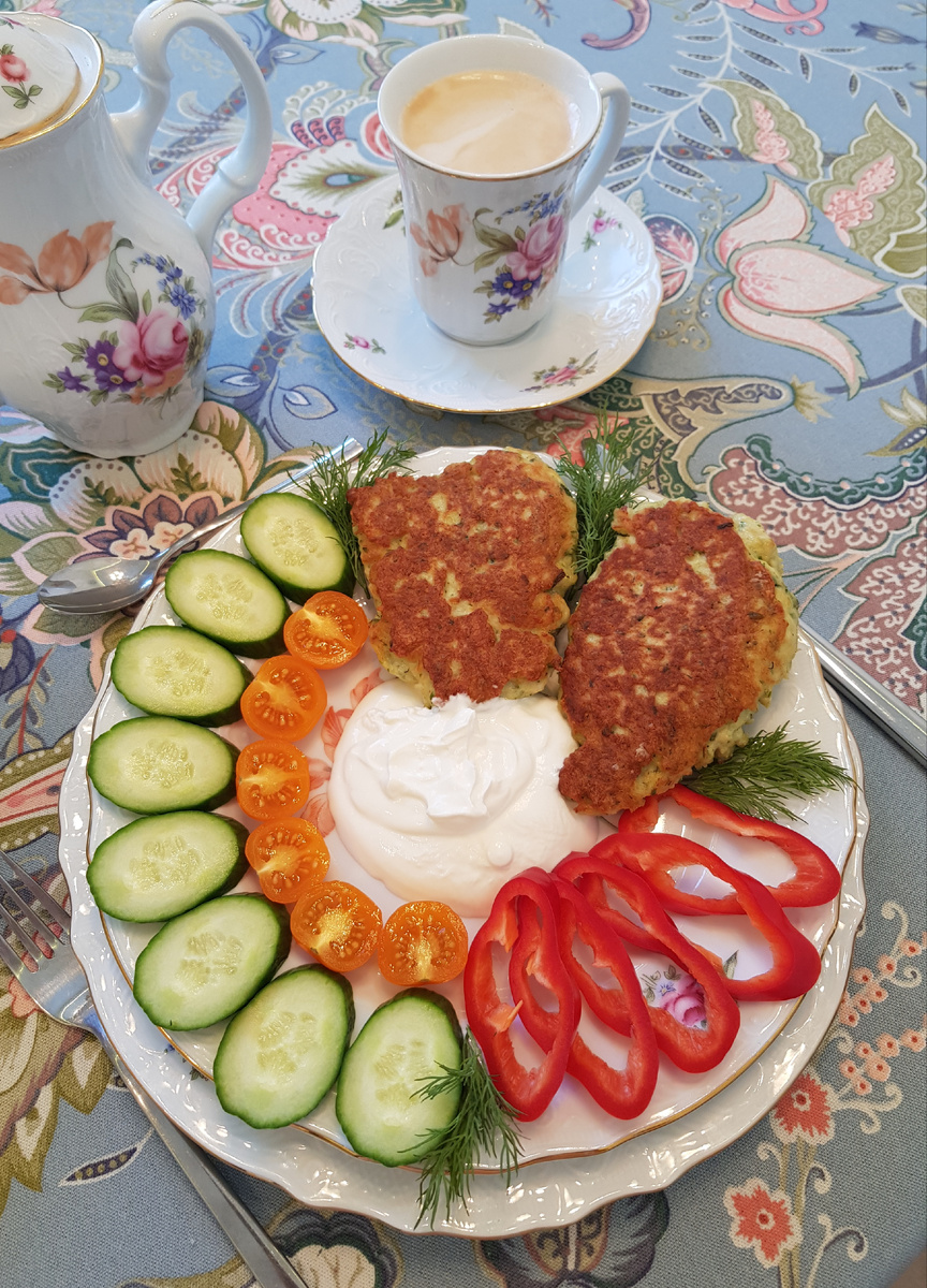 Готовые оладьи можно подавать с сметаной, свежими овощами и зеленью. Это не только вкусно, но и полезно, благодаря содержанию белка и витаминов. Приятного аппетита!