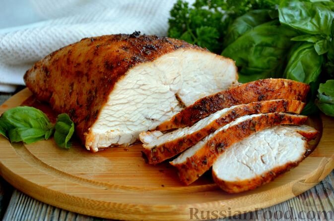 Филе индейки в пряном маринаде с соевым соусом держит курс на сочность и нежность. Рассол и маринад создают основу для мягкости, а затем запекание добавляет легкую карамелизацию на поверхности.