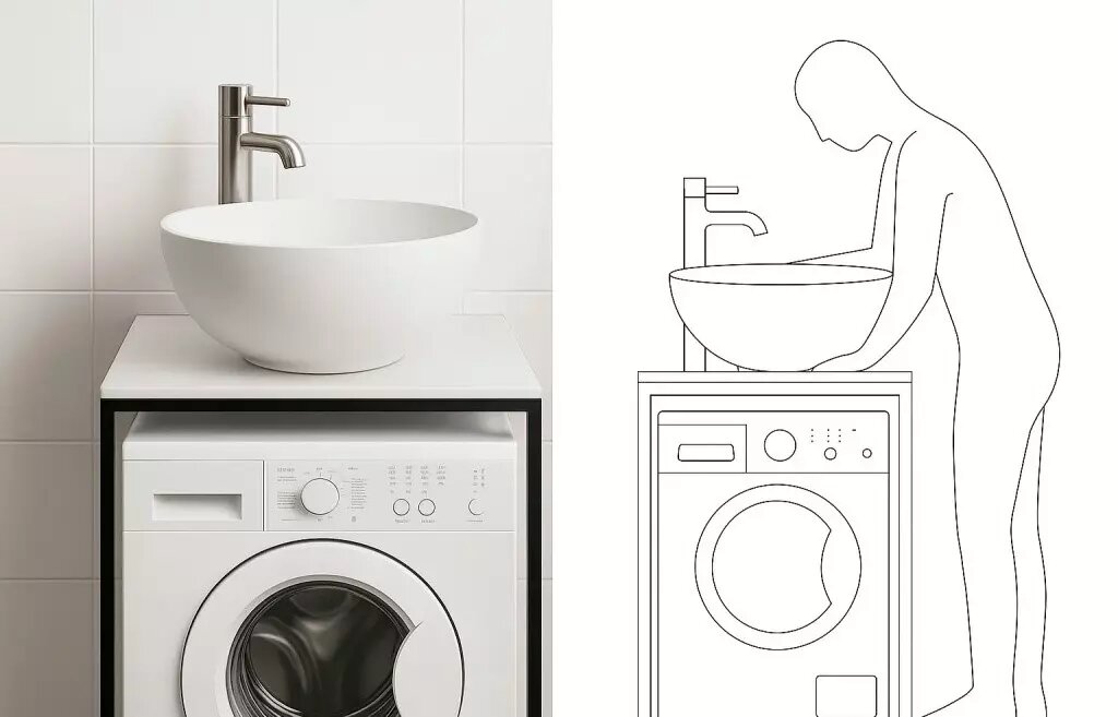 В маленькой ванной каждый сантиметр на счету, и решение вроде «раковина над стиральной машиной» может выглядеть как выход из тупика. Но простая компактность часто таит нюансы: под рукой — не всегда удобно, а влажность и доступ к технике требуют внимания.