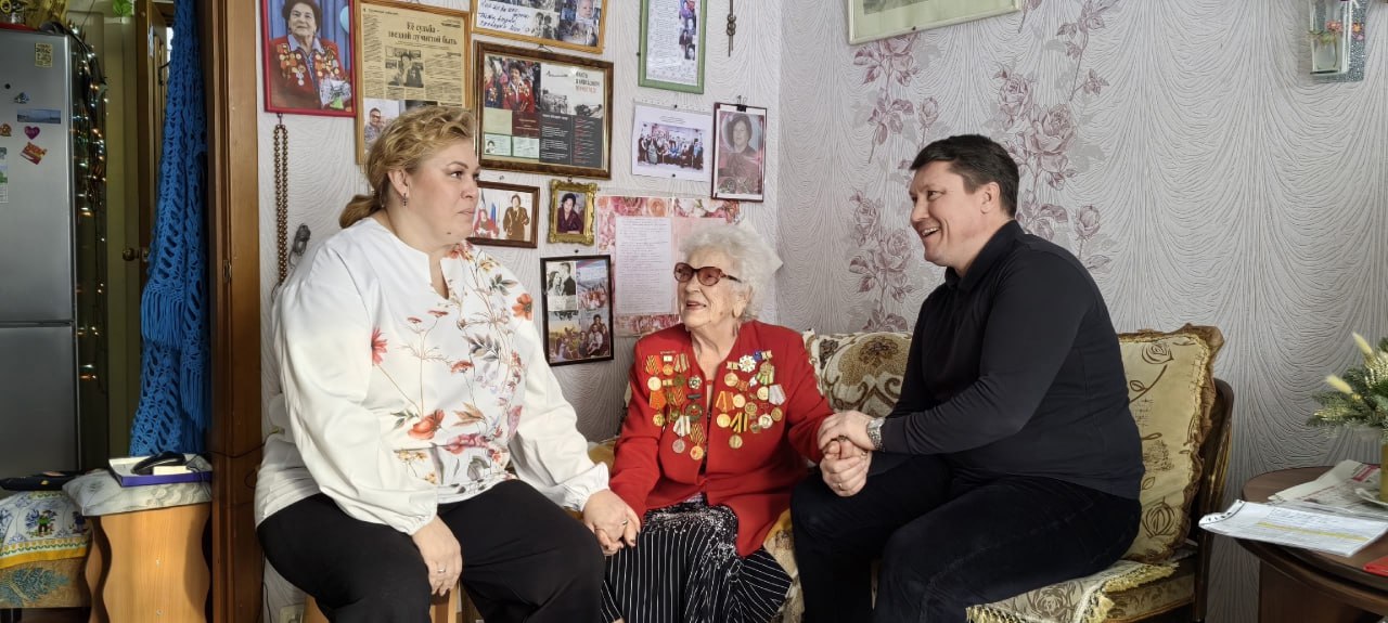 В Саяногорске депутаты Ольга Городкова и Леонид Быков навестили Марию Ивановну Ильину — сегодня она единственный в городе человек, кто может рассказать о жизни в блокадном Ленинграде. К встрече присоединился глава муниципалитета Евгений Молодняков. Разговор получился теплым — о жизни, совместной работе и важности сохранять гражданское согласие.