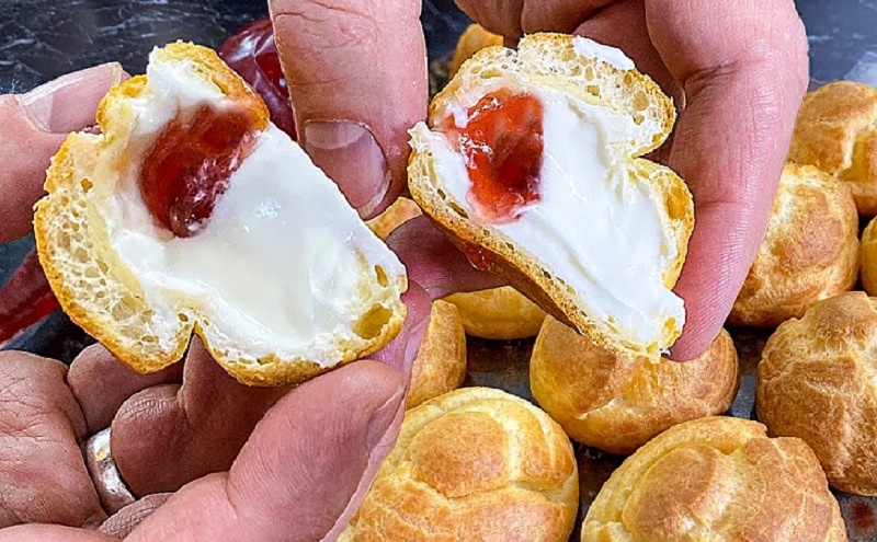 Основа десерта формируется из заварного теста: жирное масло, молоко и вода соединяются с мукой, образуя пышное тесто, которое затем объединяют с яйцами до гладкой массы. Готовое тесто охлаждают и удобной струёй выдавливают на противень, чтобы в духовке раскрылась текстура и получилась ровная корочка.