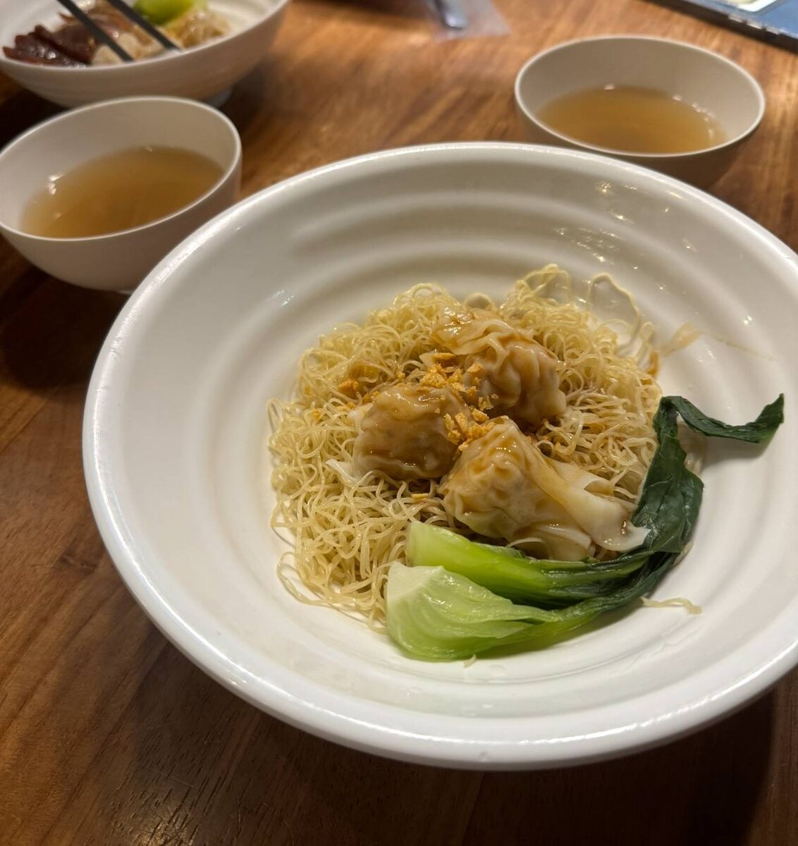 - Вонтон суп: Этот знаменитый суп представляет собой бульон с плавающими в нем вонтонами пельменями с мясной или морепродуктовой начинкой. Часто бульон подается отдельно, чтобы каждый мог добавлять вонтоны по своему вкусу.