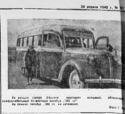 13 июня 1938 года Горисполком принимает постановление Об открытии в городе транспортной конторы Автогужтранспорта: В связи с возросшей потребностью в транспортных перевозочных средствах в г. Абакане, ввиду большого грузопотока, разгрузки станции железной дороги, пристани поставить вопрос об открытии в г. Абакане транспортной конторы Автогужтреста, а также об открытии автобусо-пассажирских перевозок Автогужтрестом по линии Абакан Таштып, Абакан Черногорск.