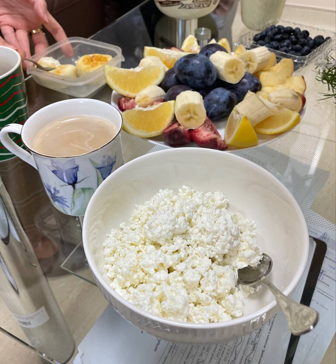 Сегодняшнее утро началось с восхитительного завтрака, который настроил на позитивный лад. На обед были поданы спиральные макароны с языком, который остался недоеденным, а также свежие сливы. Ужин состоял из домашних вареников с картофелем и грибами, нежной индейки и завершился аппетитным яблоком и пирогом с творогом и ягодами. В промежутках до ужина дополнительно были съедены еще несколько слив.