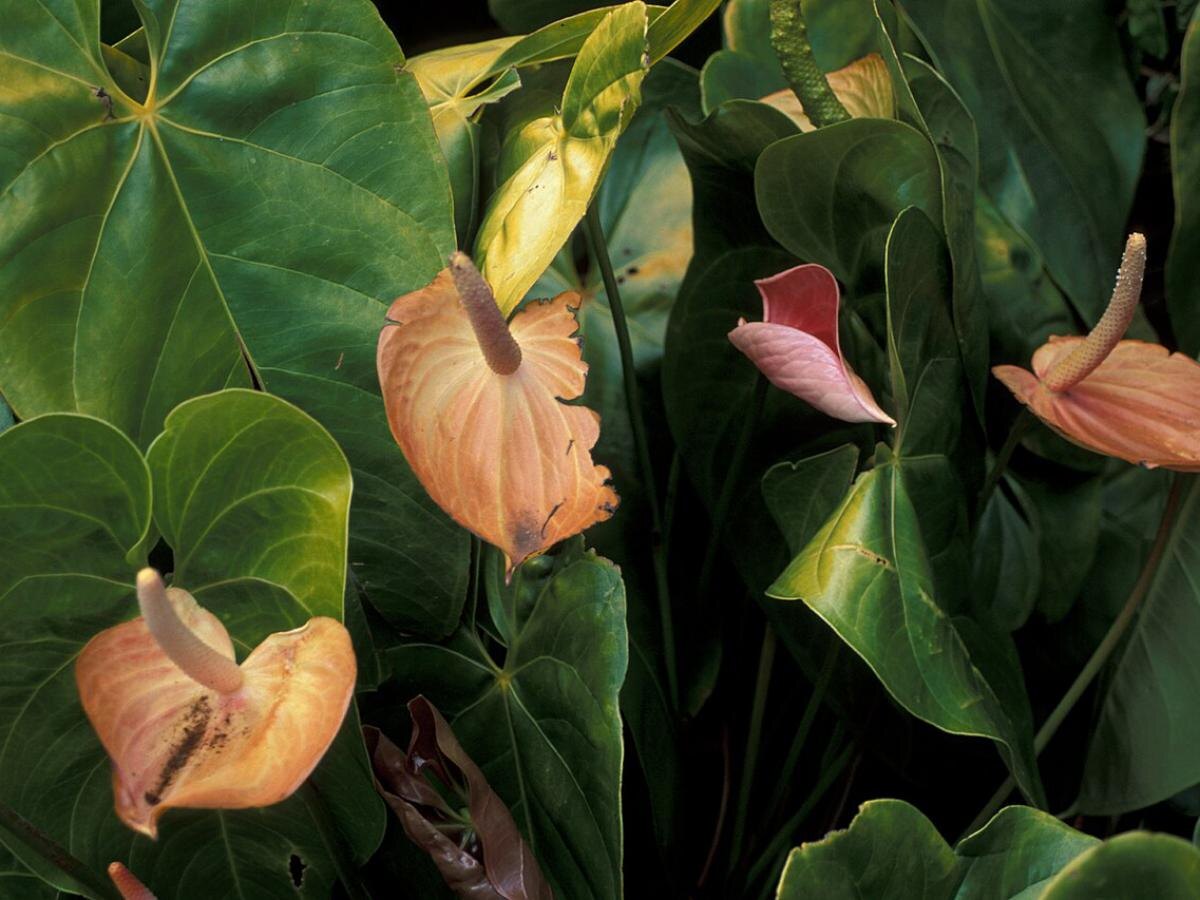 Входя в семью ароидных (Araceae), антуриум родом из тропических лесов Латинской Америки. Здесь, в нашем климате, растение сталкивается с трудностями адаптации, особенно в зимний период. Поэтому антуриум чаще всего выращивается в помещениях с более стабильными температурными условиями. Листья этого растения бывают ланцетными или сердцевидными, всегда сверкающими ярко-зеленым цветом.
