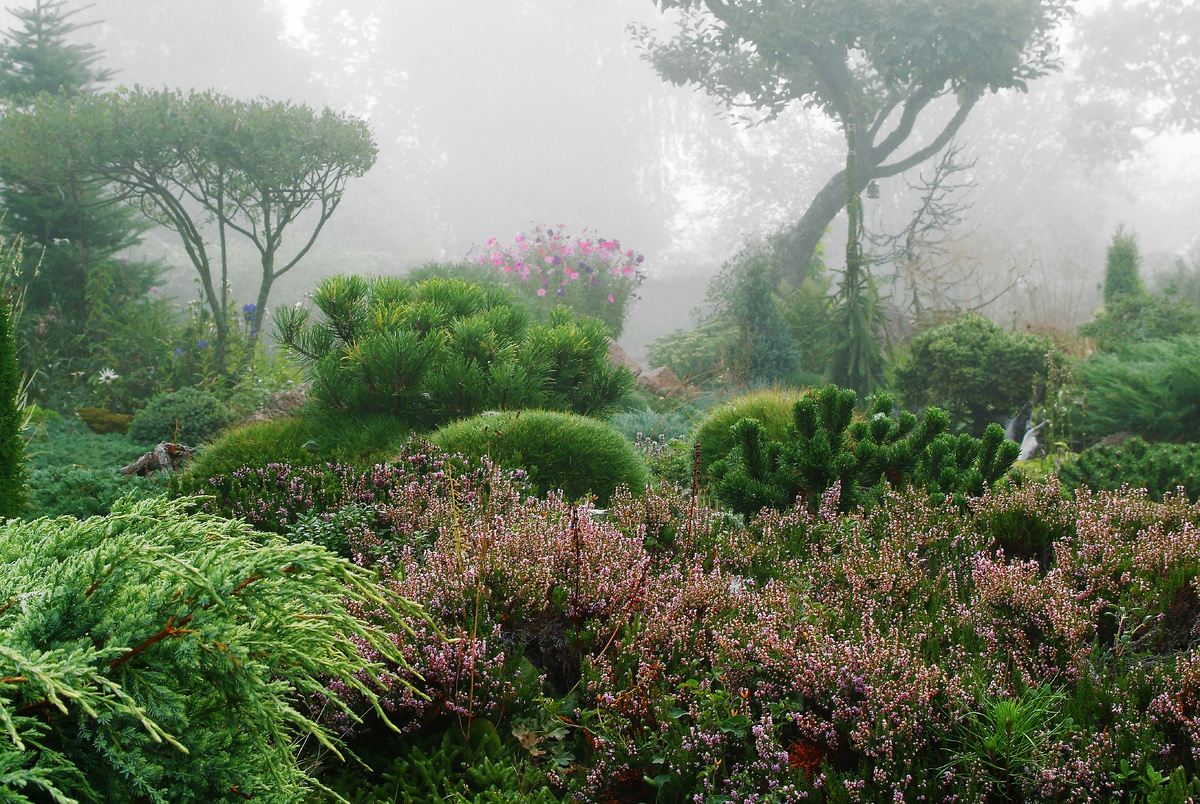 Другим вариантом открытого пейзажа могут стать северные виды, такие как приморские каменистые долины. При создании подобного ландшафта необходимы угловатые камни и почвопокровные растения, такие как рододендроны и верески. В контексте северных садов стоит рассмотреть добавление колонновидных хвойных деревьев, ведь такая картинка часто отражает суровые северные ландшафты.