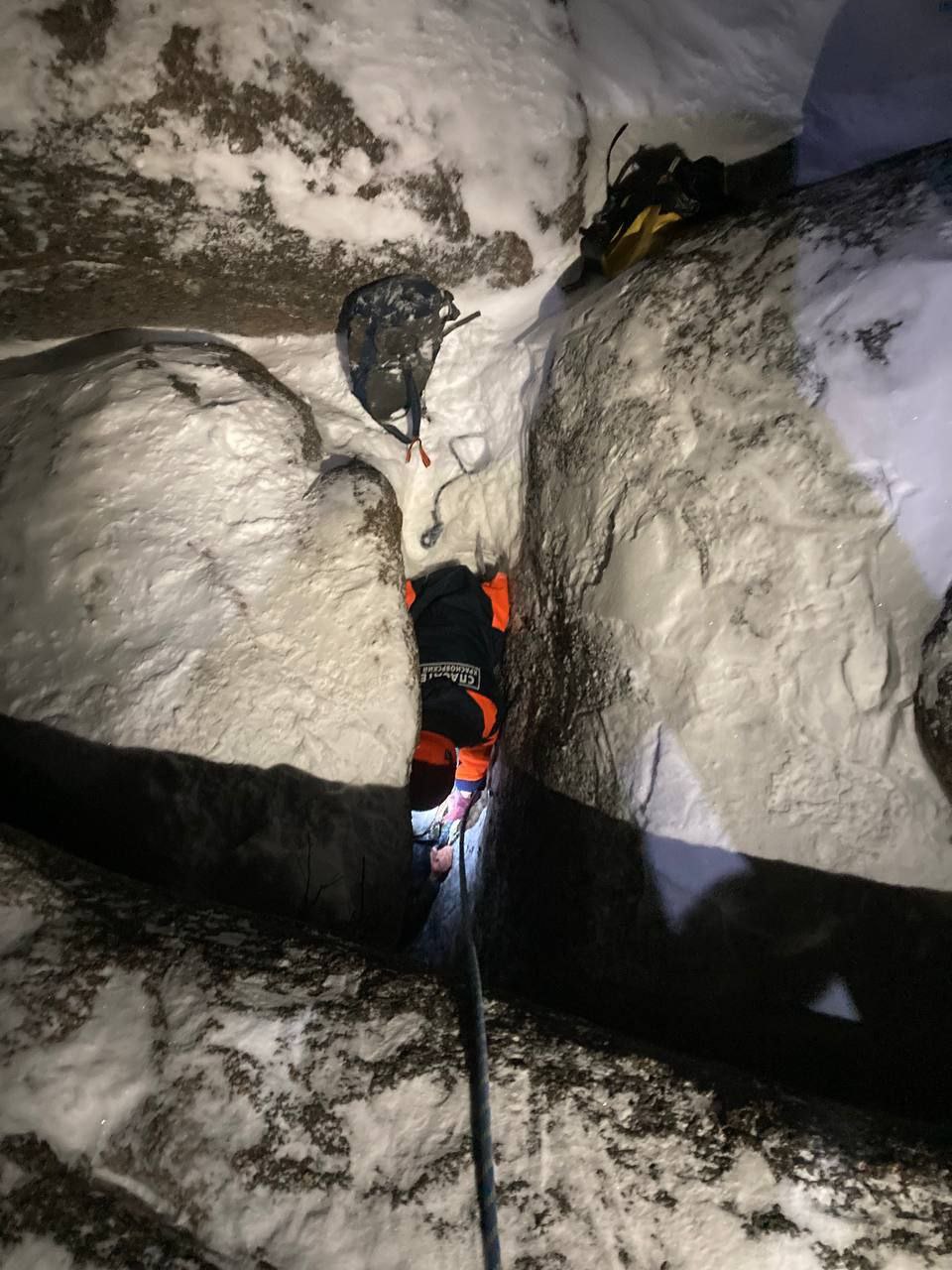 Пострадавшего достали с помощью альпинистского снаряжения и передали медикам.