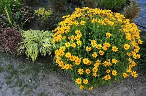 Посадка кореопсиса не требует особых навыков. Достаточно высадить рассаду или деленки в подготовленные лунки, придерживаясь расстояния между растениями от 25 до 50 см. Полив требуется умеренный, поскольку это засухоустойчивое растение легче переносит временную сухость, чем излишнюю влажность. Две подкормки в сезон – весной и в середине лета – позволят кореопсису оставаться здоровым и продолжать радовать вас цветением.