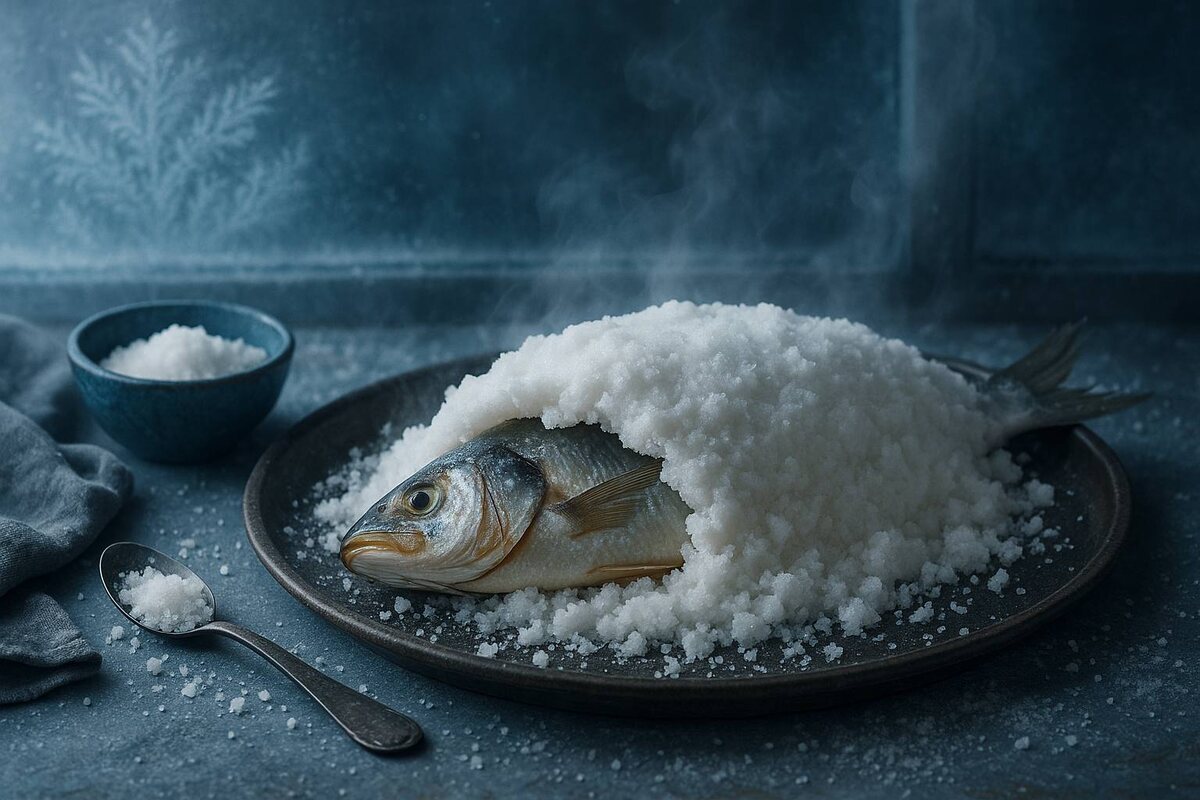 Идея этого рецепта пришла из Югры, где рыбу редко жарят или запекают. Вместо этого, ее обмазывают солью и прикрывают снежным слоем. Результат — сочная, плотная рыба с ароматом костра и свежего северного ветра, вкус которой словно создается самой природой.