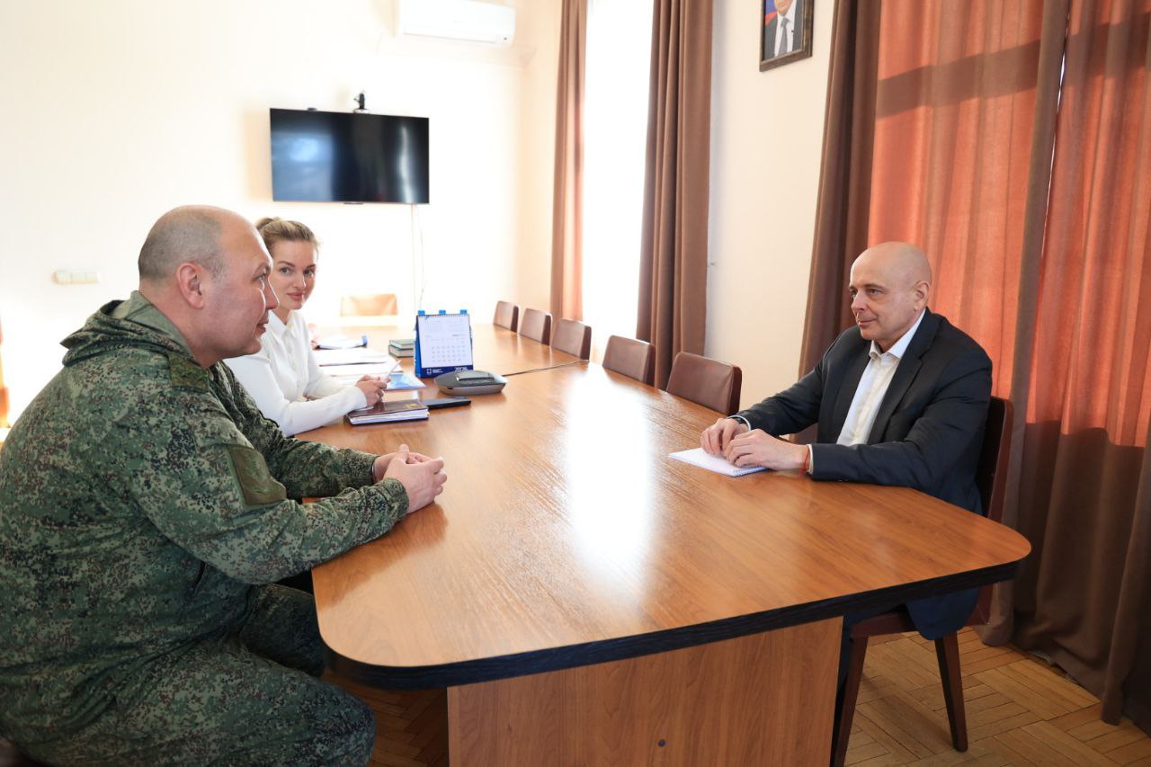 Председатель Верховного Совета Хакасии Сергей Сокол провел рабочую встречу новым военным комиссаром столицы республики, кадровым офицером Андреем Чичининым.