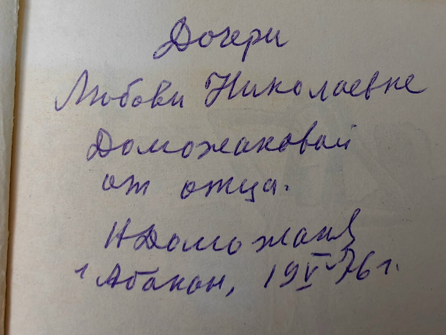 Одна из книг имеет памятную надпись «Дочери Любови Николаевне от отца» и его подпись. Отдельный интерес представляет издание, которого ранее не было в фондах библиотеки. Книга вышла в 1983 году в Киеве, в переводе с хакасского языка на украинский, тиражом 48 тысяч экземпляров и сегодня является библиографической редкостью.