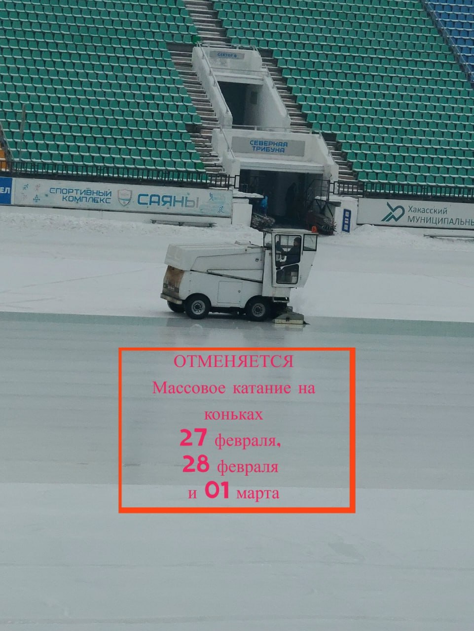 В связи с прогнозируемым понижением температуры наружного воздуха, массовое катание на коньках, запланированные на:
