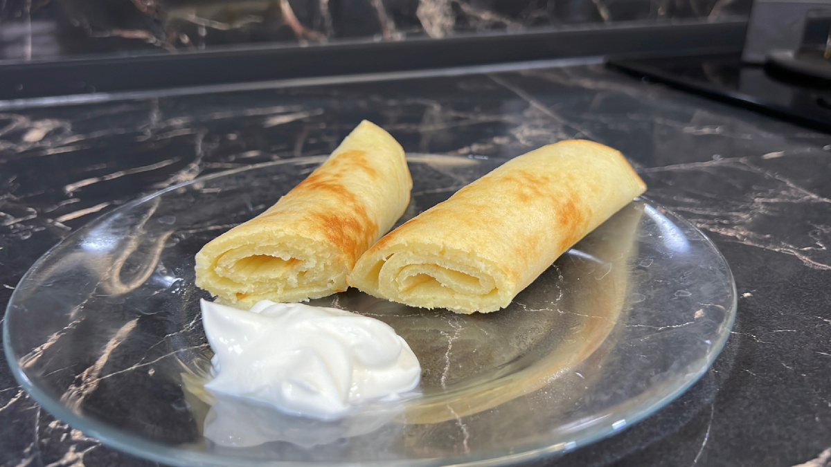 Для этого рецепта потребуется: 2 стакана кефира, 2 яйца, 1,5 стакана муки, 3 столовые ложки сахара, 0,5 чайной ложки соды и 0,25 чайной ложки соли. В глубокой миске взбейте яйца с сахаром, потом добавьте кефир и вновь тщательно перемешайте. Постепенно вводите муку, чтобы избежать комков, затем добавьте соду и соль. Оставьте тесто на 15-20 минут. Жарьте на сковороде так же, как в предыдущих случаях, и подавайте с различными начинками.
