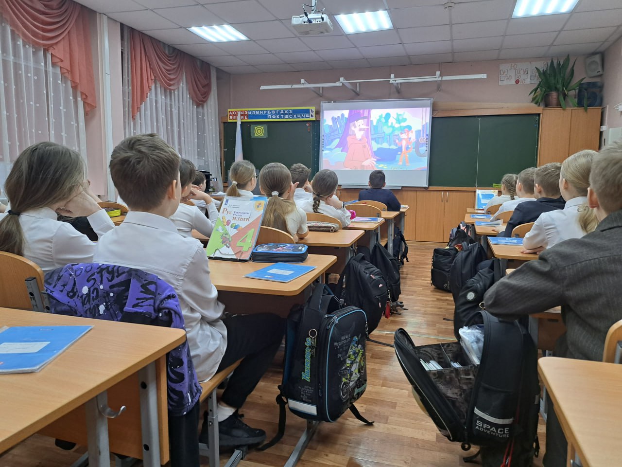 Сегодня он побывал в гостях у учеников 4 класса абаканской Гимназии вместе с героями мультипликационного сериала "Простоквашино".