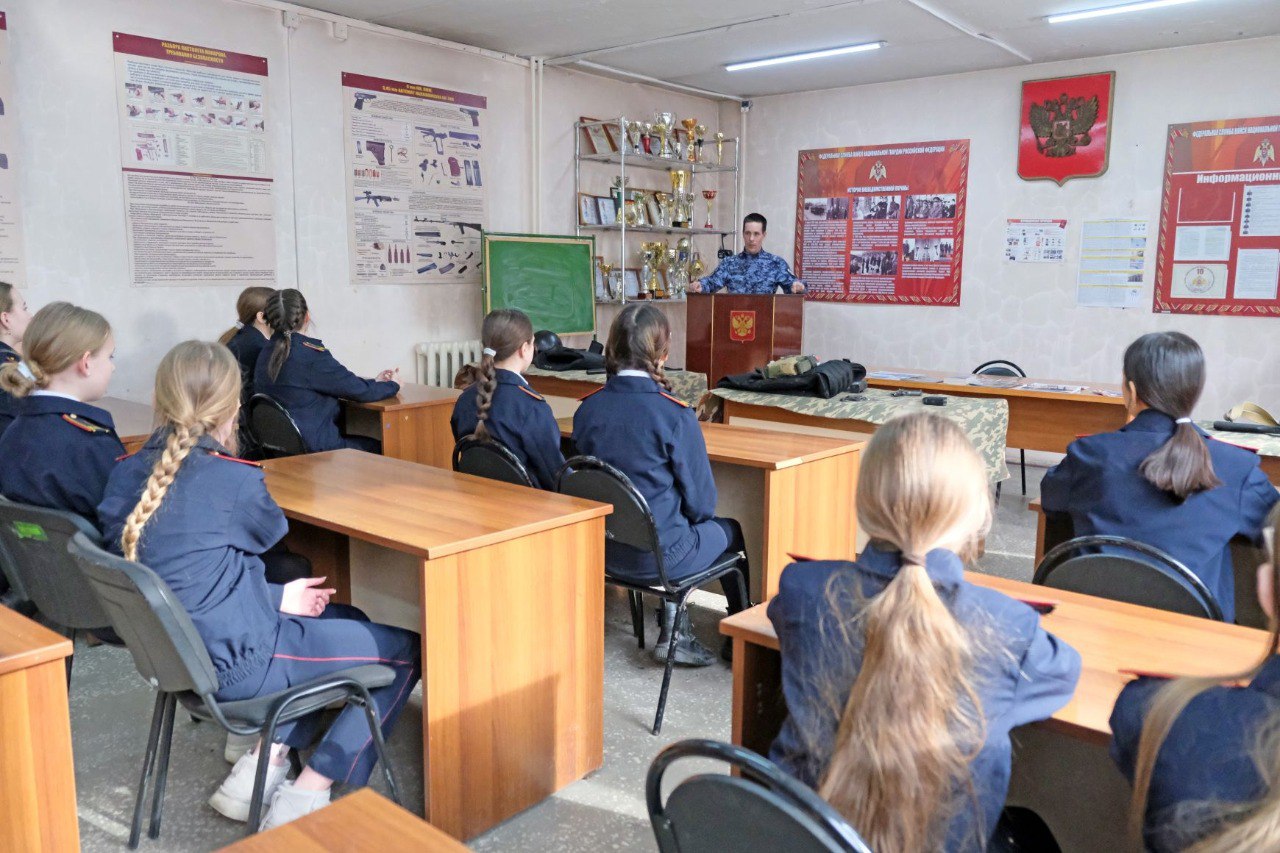 В преддверии 10-летия Росгвардии и по случаю Международного женского дня сотрудники Отдела вневедомственной охраны Абакана познакомили со своей службой учениц профильного седьмого кадетского класса школы № 33. Экскурсия стала для девочек подарком, о котором они просили.