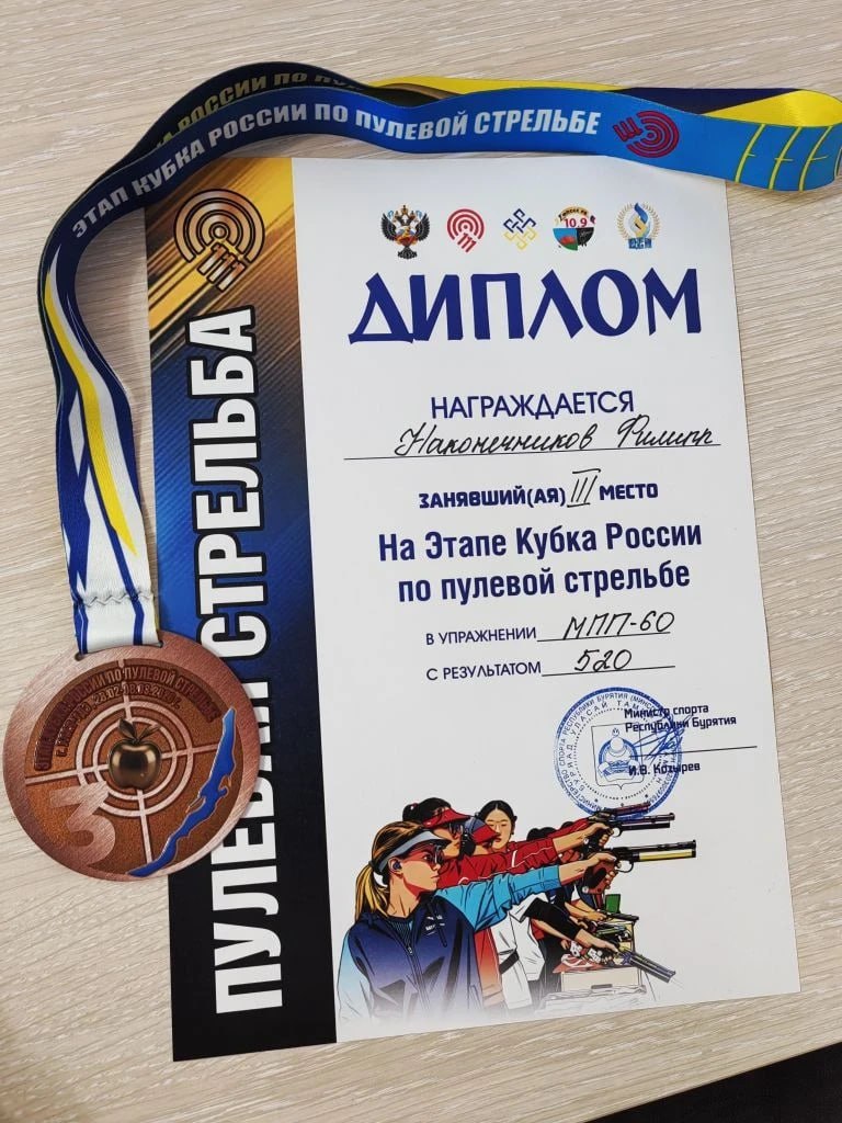 Воспитанник городской комплексной спортшколы стал лучшим в упражнении «пистолет пневматический 60 выстрелов». Еще один наш спортсмен Филипп Наконечников завоевал бронзовую медаль Кубка России в упражнении «малокалиберный производственный пистолет» на дистанции 50 метров. Тренирует ребят Виктор Кульпин.