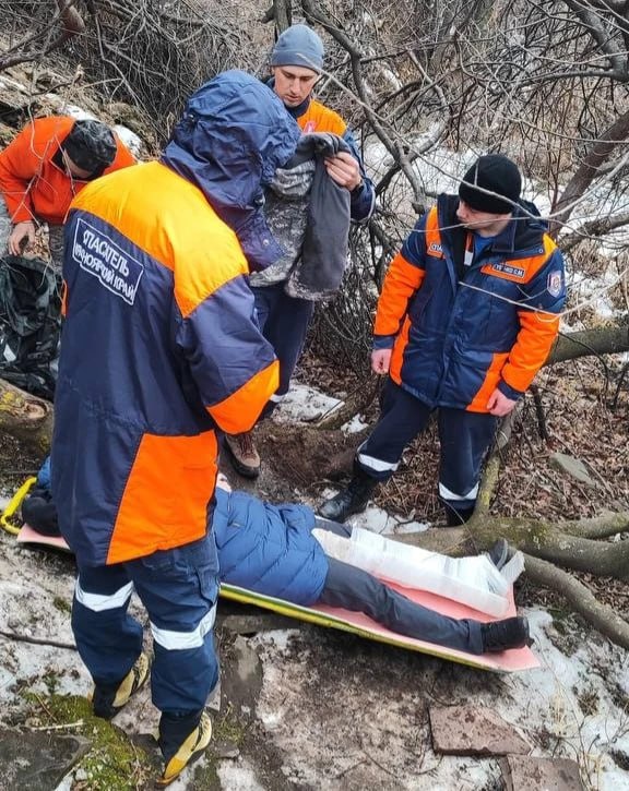 Больше 2 километров пришлось нести на носилках: в Минусинском округе женщина сломала ногу, добираясь до замёрзшего водопада