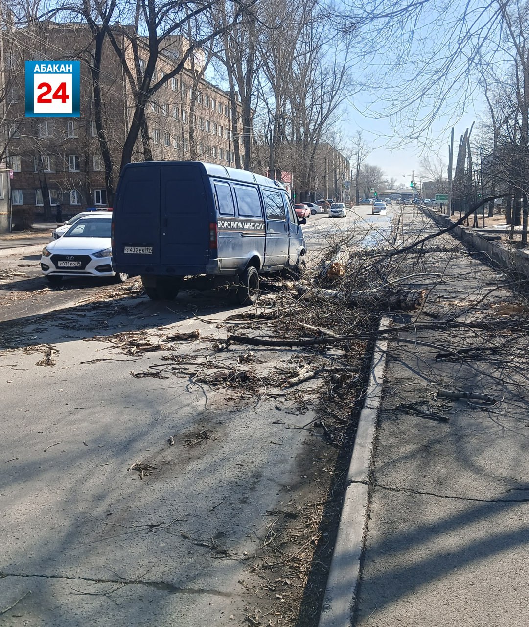 Тополь упал на ГАЗель "ритуальщиков" по Ярыгина в Абакане