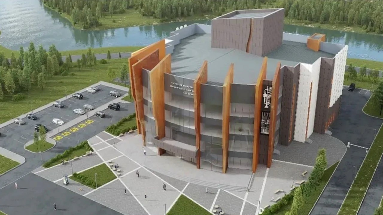 Также представлено эскизное фото будущего театра. Внешний вид здания пока ещё находится на согласовании.