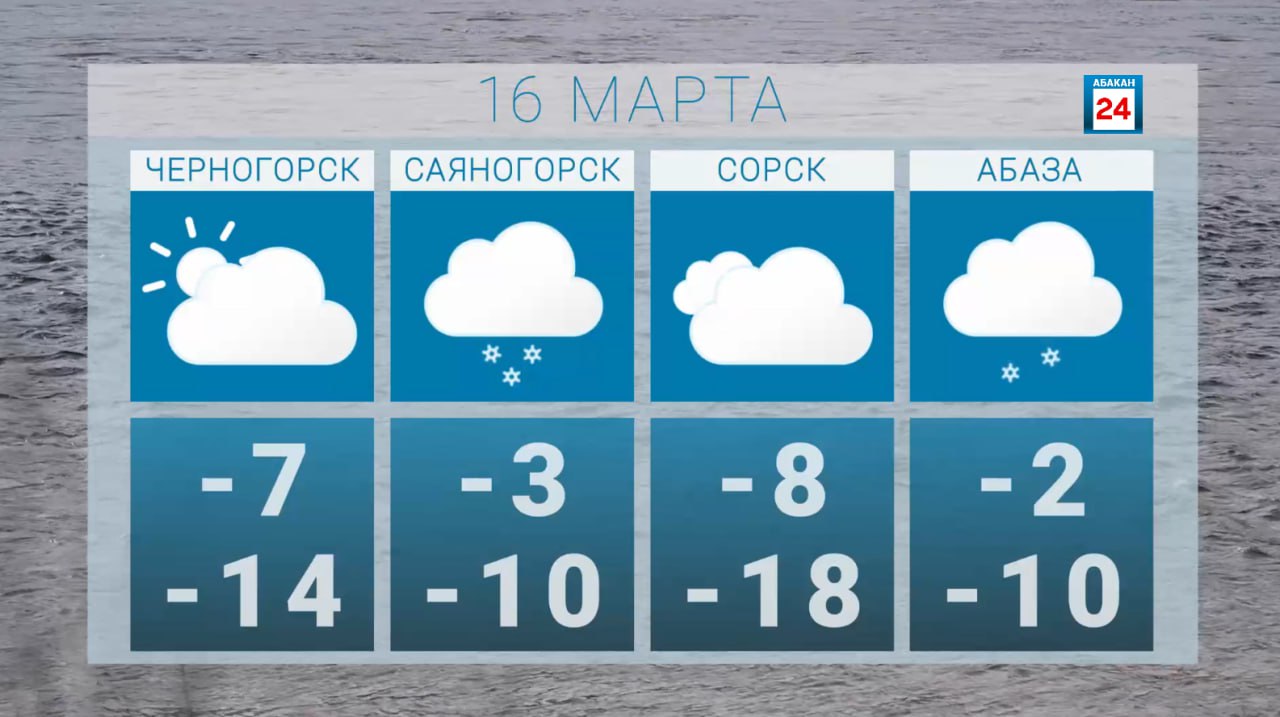 В ночь с 15 на 16 марта по Республике переменная облачность, местами небольшой снег, в горах - сильный.Ветер северо-западный 5-10 м/с, местами порывы 15-20 м/с.Температура воздуха -17,-22°, местами -10,-15°.На дорогах гололедица.В Абакане переменная...