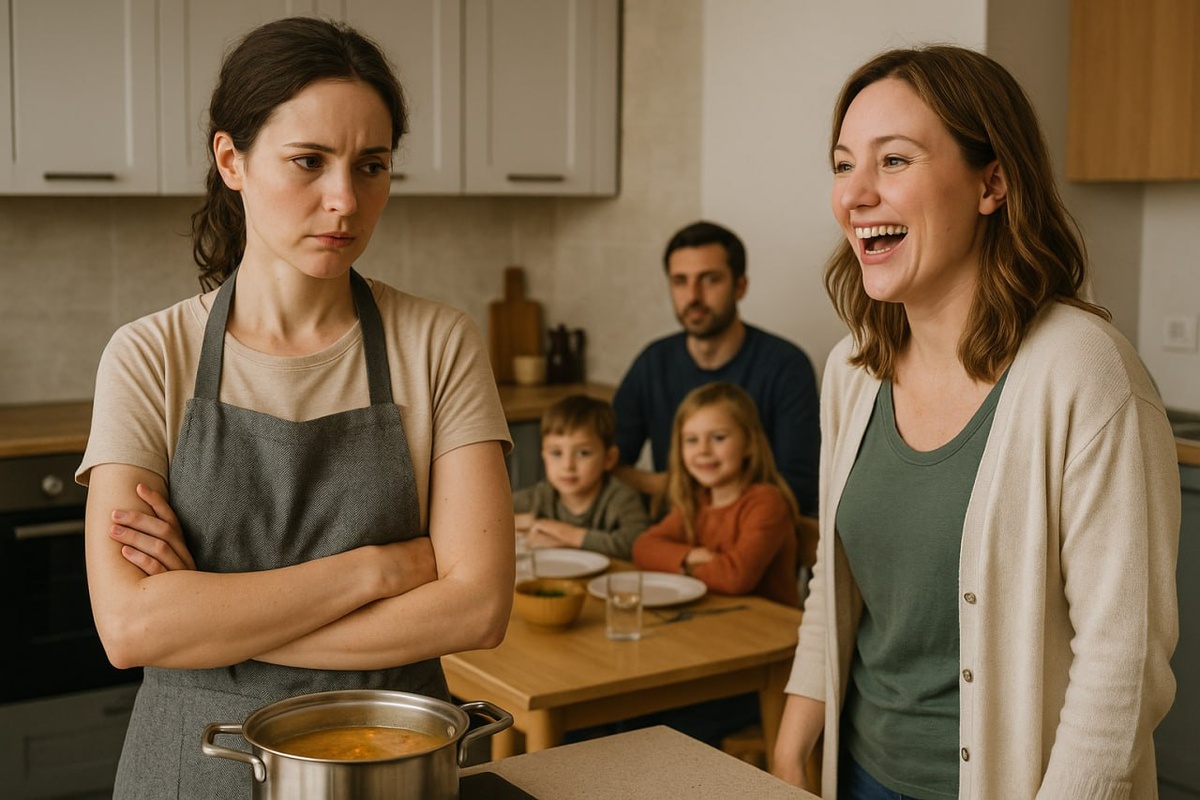 На следующий день, когда Яна готовила суп, вновь прозвучал знакомый стук в дверь — Алина со своей командой снова решила «случайно» заглянуть. На этот раз Яна не убрала фартук, налив лишь немного на стол. Лиза уже закончила свою порцию, а сама Алина сердито удивилась количеству еды.