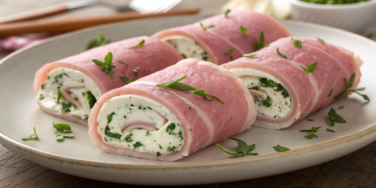 Рулетики из ветчины с сыром и зеленью