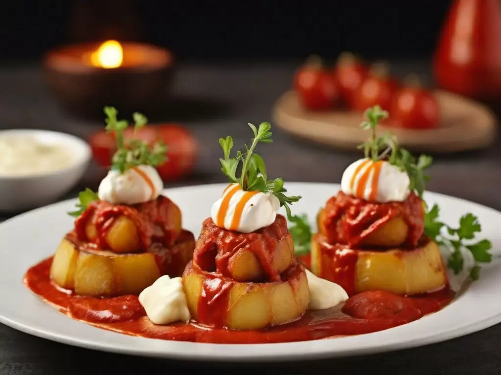 Первая в нашем списке - Пататас Бравас, народное испанское «угощение». Это хрустящие жареные картофельные кубики, подаваемые с пикантным томатным соусом и нежным майонезом. Это блюдо сможет согреть душу в любой ситуации!