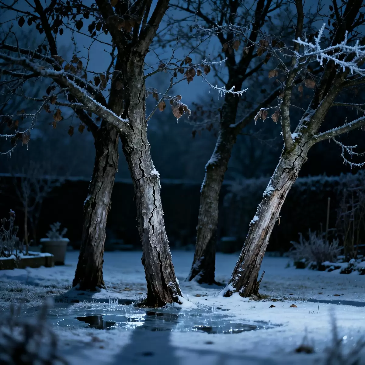 Резкие перепады температур зимой наносят урон коре деревьев, особенно молодым. Чтобы предотвратить трещины, можно побелить стволы осенью и использовать мешковину или бумагу от мороза. Если всё же появились трещины, срочно обработайте их смесью глины и навоза — это поможет спасти кору до прихода весны.