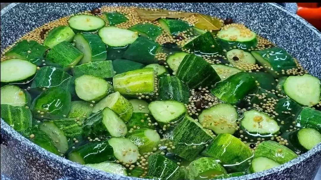 3. Бланширование и закатка: Как только маринад закипит, аккуратно добавляются нарезанные огурцы. Их нужно варить в маринаде 4 минуты, периодически помешивая. Банки и крышки обязательно стерилизуются. Полные банки с огурцами заливаются горячим маринадом, затем закрываются крышками и переворачиваются вверх дном до полного остывания.